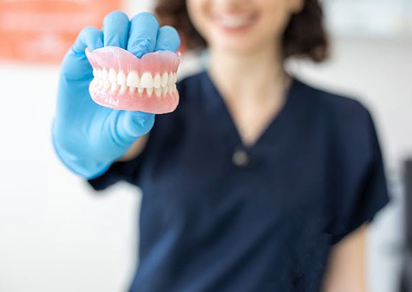 A denture is worn to replace lost or missing teeth to enable you to enjoy a healthy diet and smile with confidence. A complete or full denture is one that replaces all of the natural teeth in either the upper or lower jaws. A partial denture fills in the spaces created by lost or missing teeth and is attached to your natural teeth with metal clasps or devices called precision attachments.